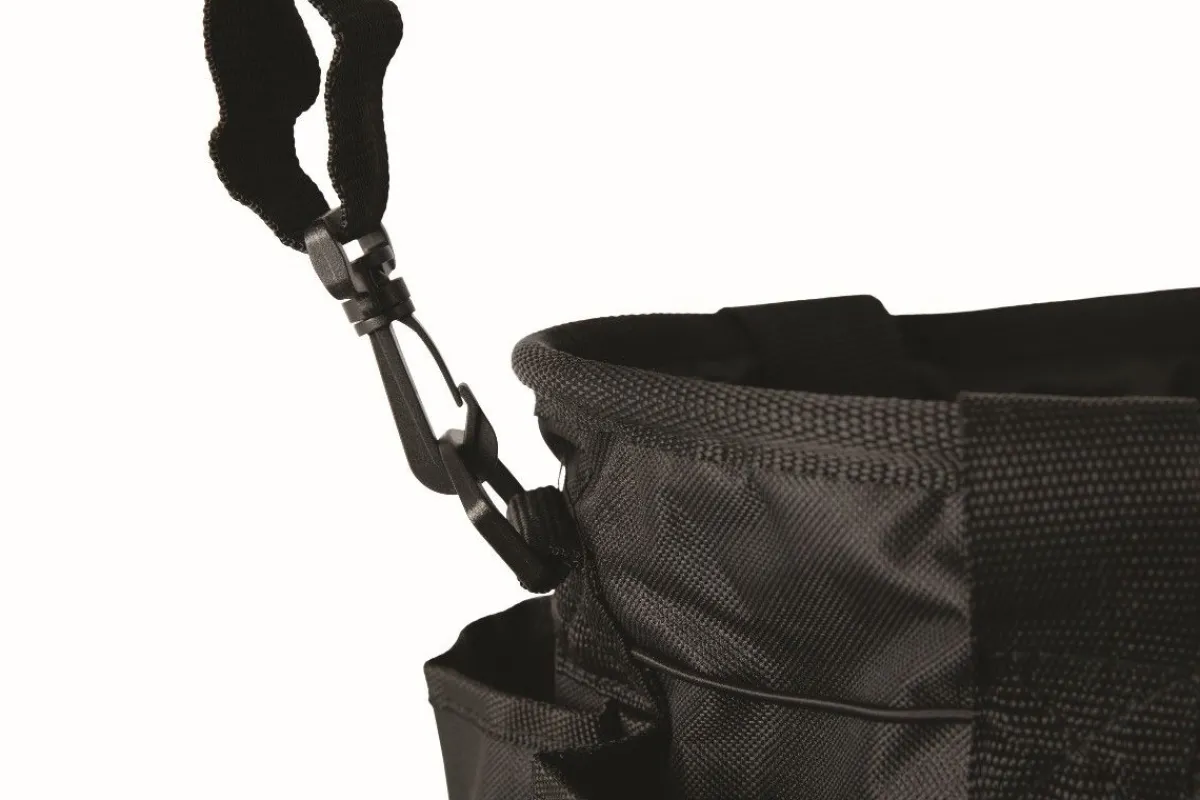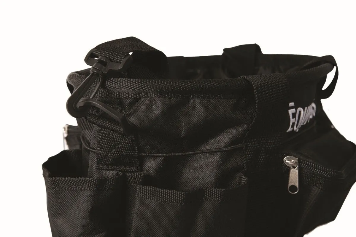 Sac de pansage multi poches contenant tous les essentiels pour le pansage d’un équidé.